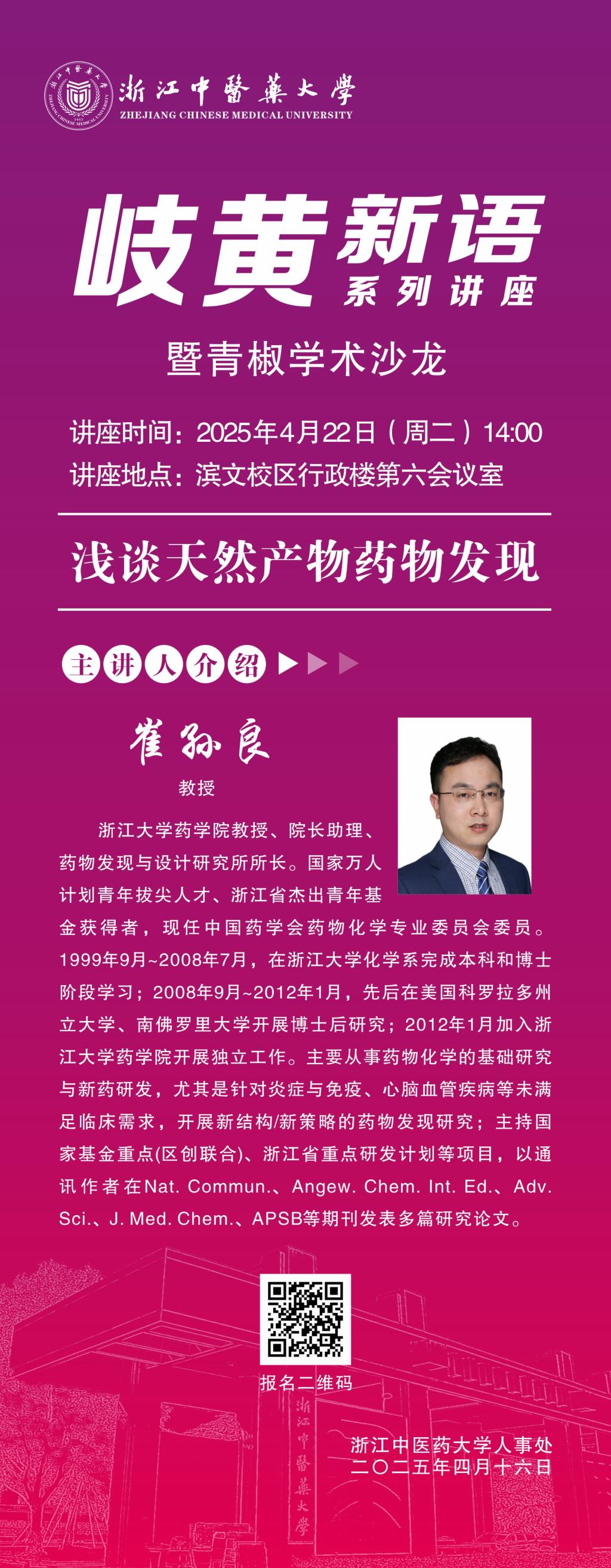 本期嘉宾邀请浙江大学崔孙良教授现场讲座,主题为:浅谈天然产物药物发现。